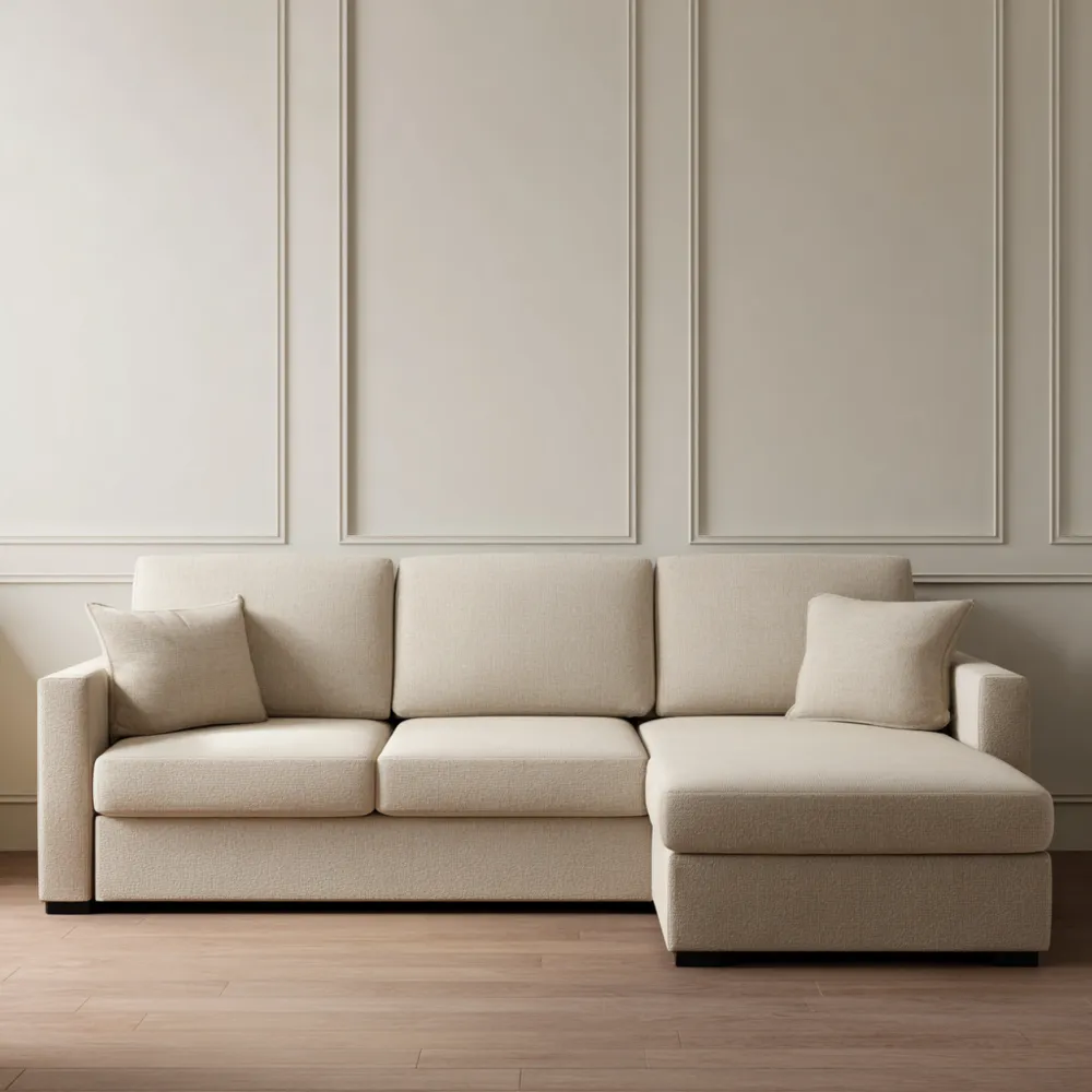 Matériaux et fabricationCe canapé est fabriqué à partir de tissu de haute qualité en couleur Beige, offrant une texture douce et un aspect raffiné. Le cadre est robuste et conçu pour durer.
