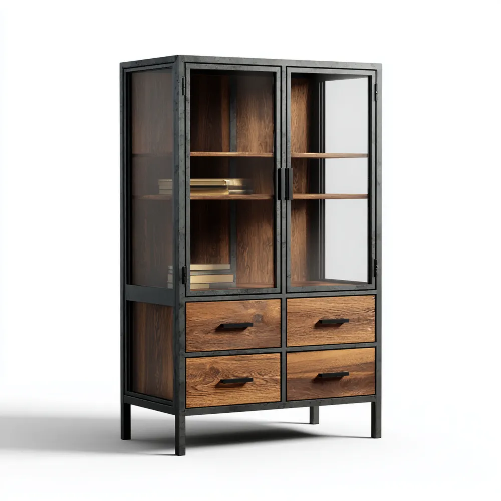 Points fortsConçue avec quatre tiroirs spacieux et des étagères en verre, elle permet d'organiser et d'afficher vos livres, vases et autres objets de décoration.